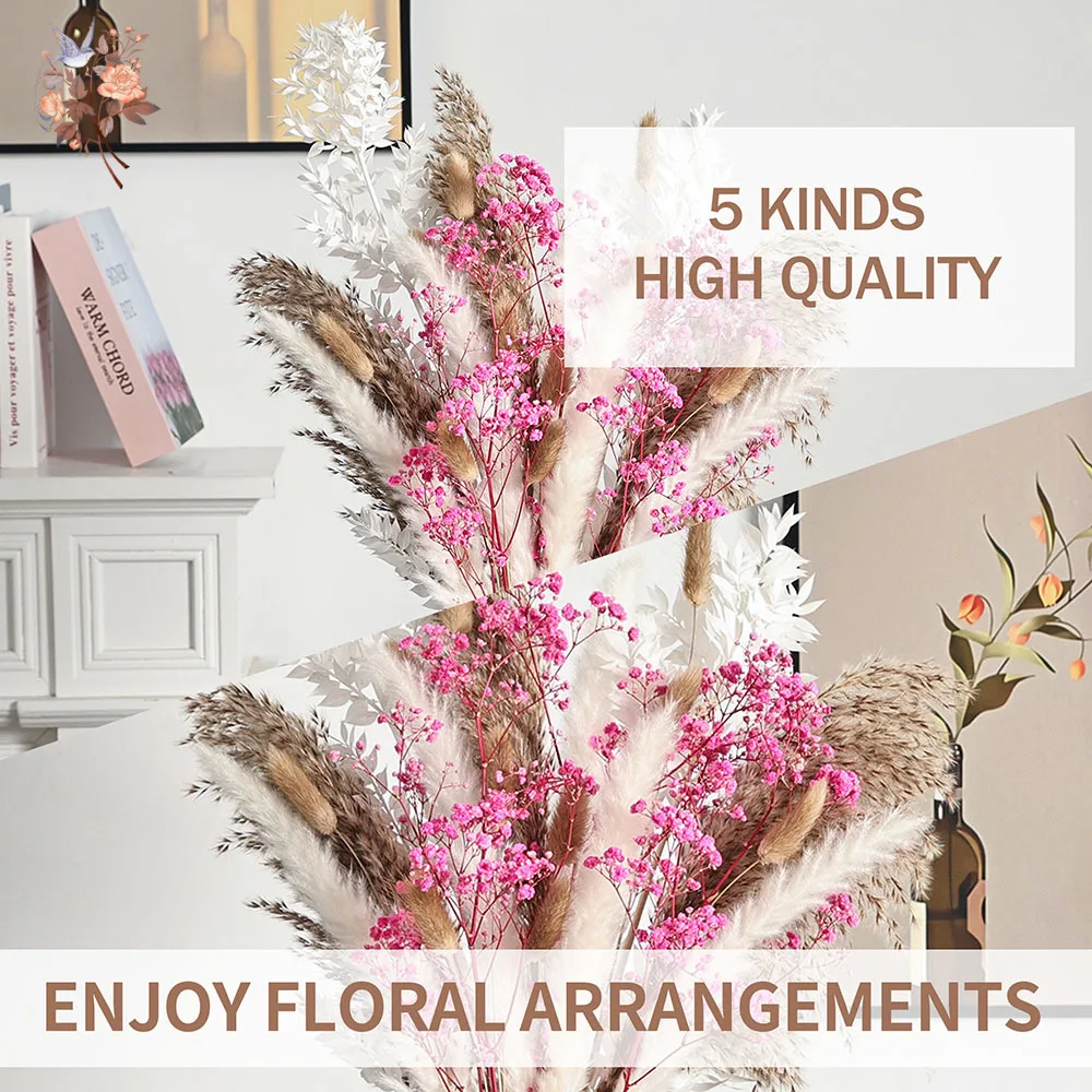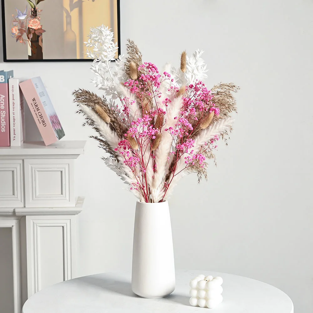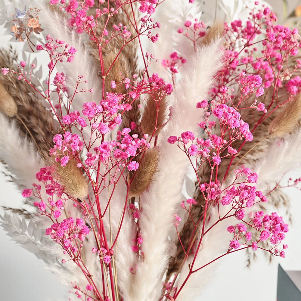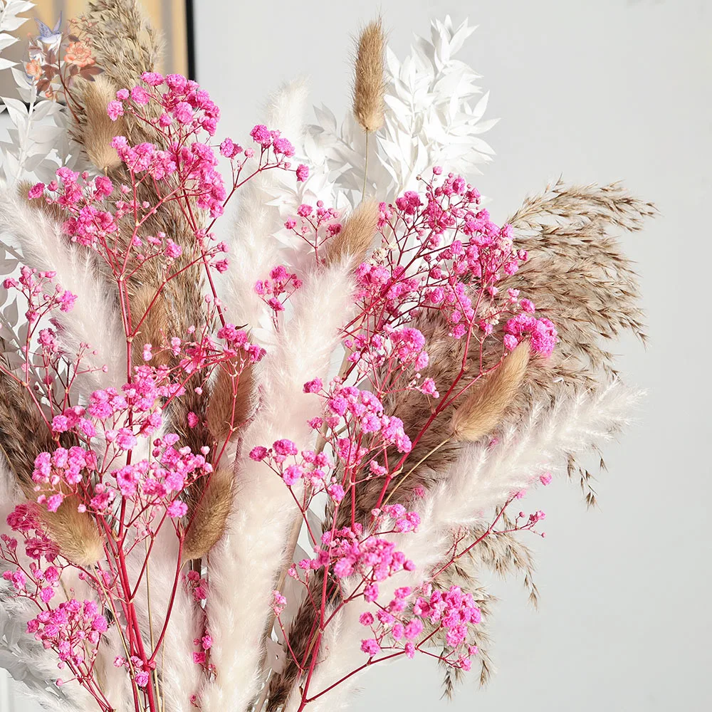 باقة زهور وردية أبدية، ديكور منزلي جمالي، بامباس مجفف، أنفاس الطفل الطبيعية، ديكور طاولة الزفاف وإكسسواراتها