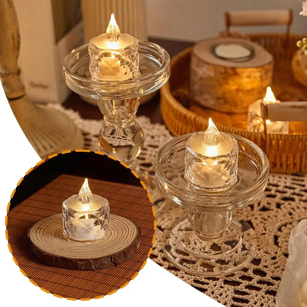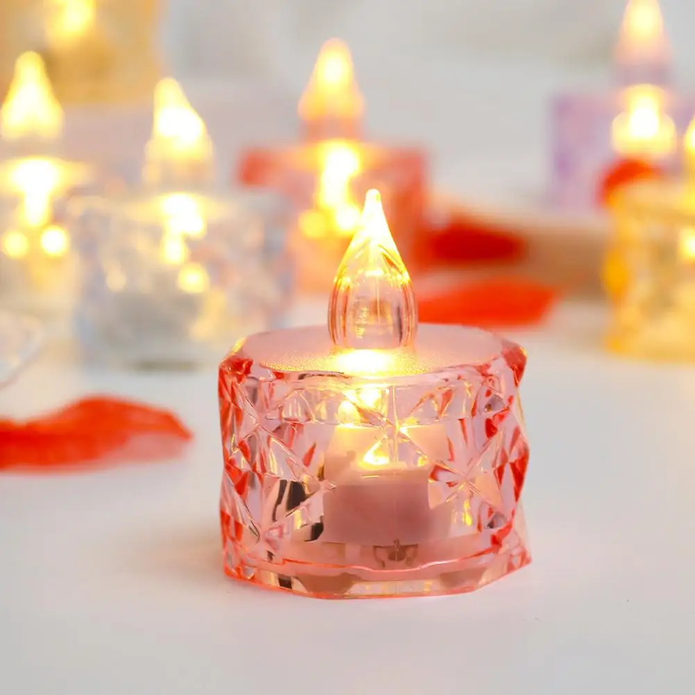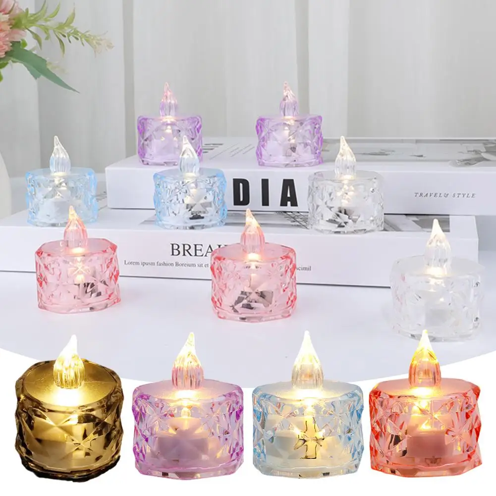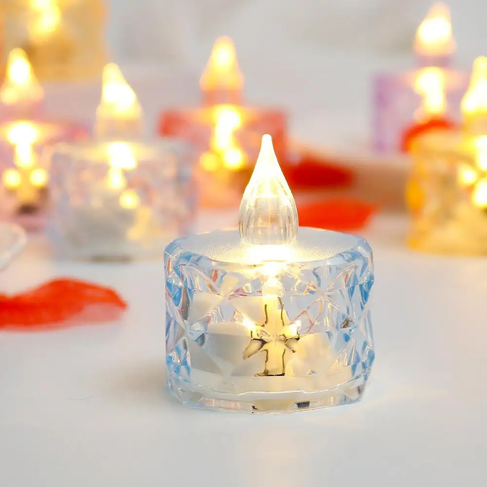 شمعة LED بدون لهب، ضوء شمعة كريستال LED، مصباح إلكتروني ليلي شفاف، مناسب لحفلات المواعدة والعطلات وديكور المنزل