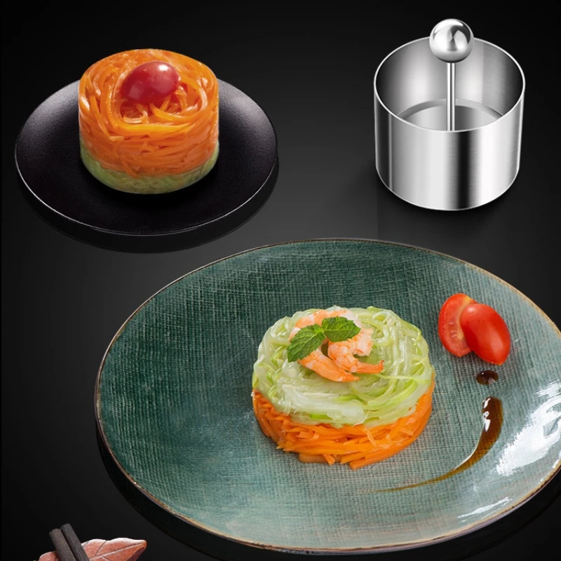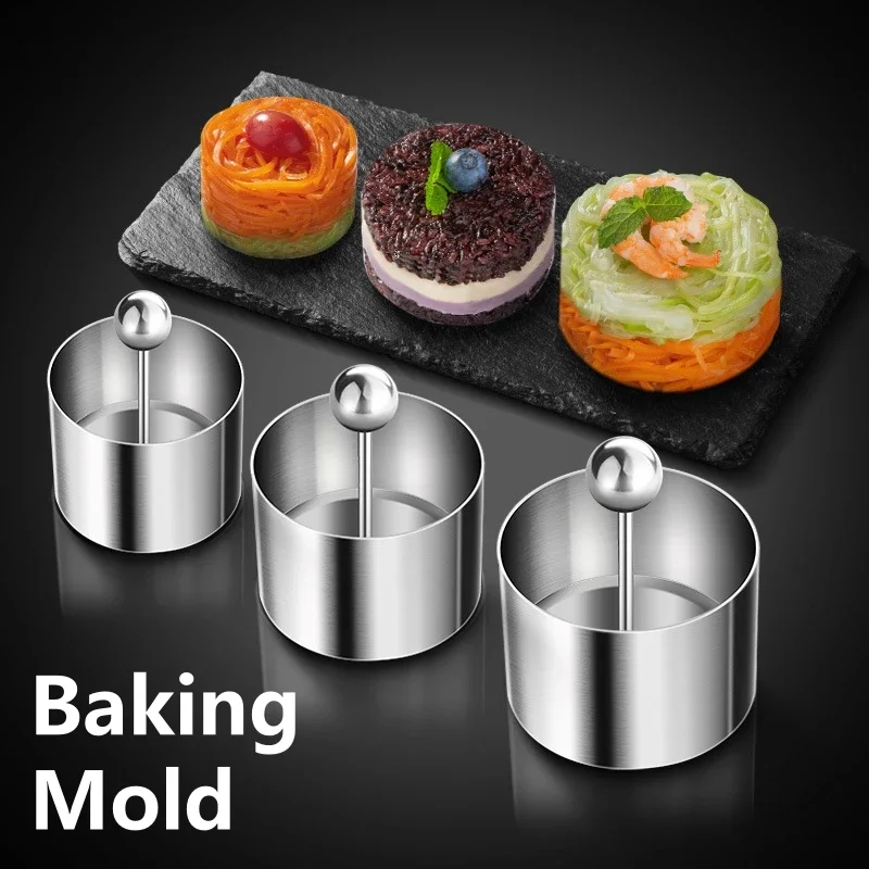 قالب موس دائري من الفولاذ المقاوم للصدأ مع غطاء أدوات تزيين الطعام – صنع معجنات مقاومة للصدأ وكرات أرز وأدوات طبخ السوشي