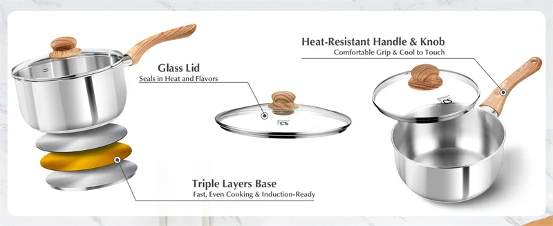 جاهز للاستخدام في مواقد الحث: صُممت هذه المقلاة المصنوعة من الفولاذ المقاوم للصدأ خصيصًا لمواقد الحث، وتضمن أداءً مثاليًا مع الحفاظ على توافقها التام مع أسطح الطهي الزجاجية والكهربائية والسيراميكية. طقم مقالي صلصة مثالي من الفولاذ المقاوم للصدأ لمواقد الحث.