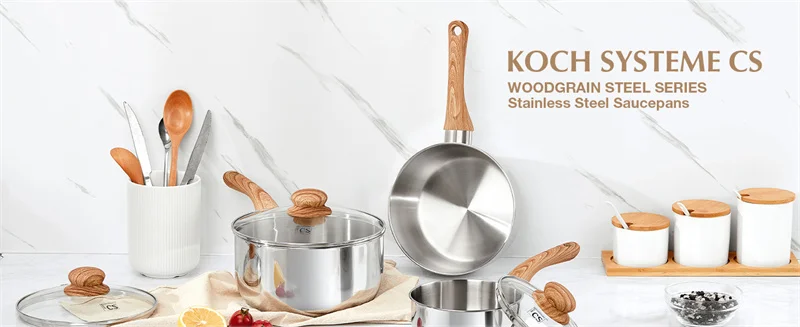 قدر طهي من الفولاذ المقاوم للصدأ KOCH SYSTEME CS سعة 1/2/3 كوارت مع قدر حليب بمقبض من الباكليت المقاوم للحرارة، أواني طهي بالحث