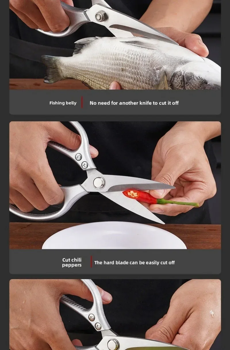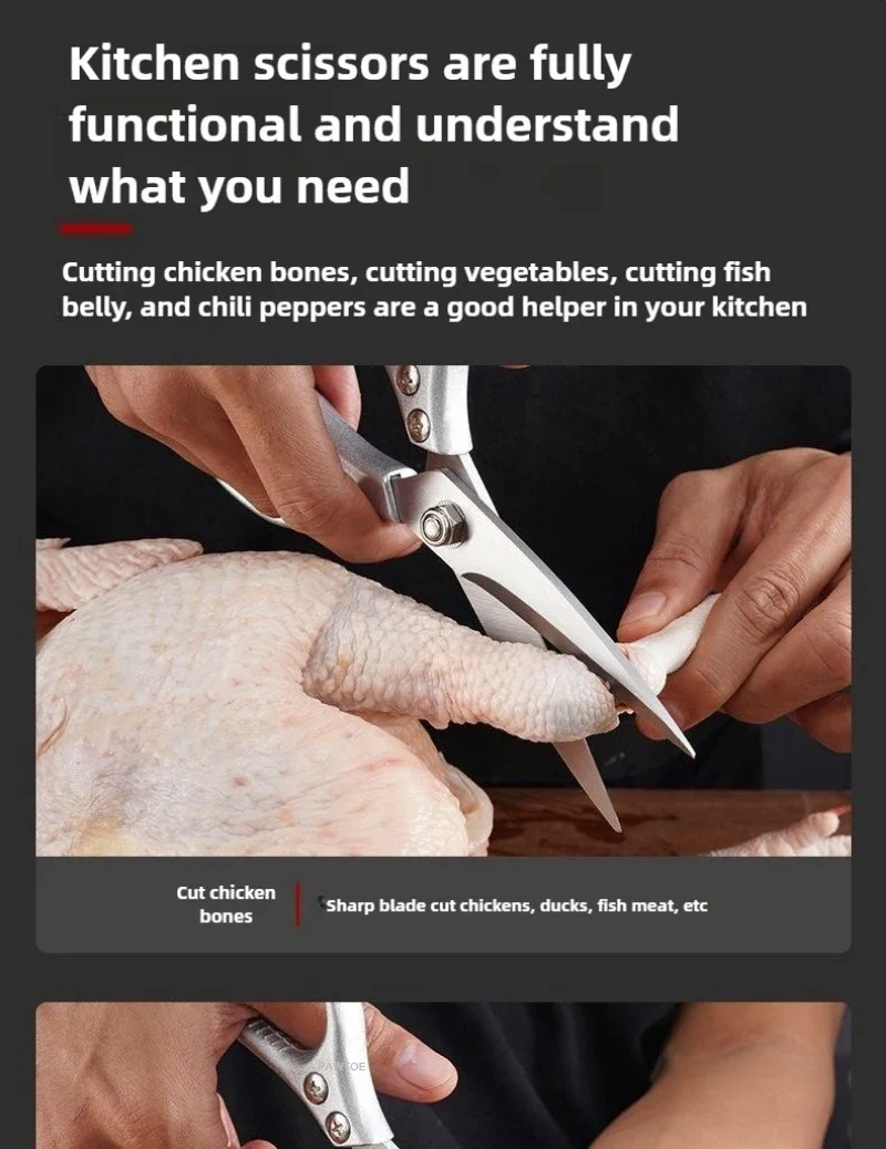• استخدام متعدد الوظائف: هذه المقصات مثالية لإعداد الطعام، من تقطيع الدجاج والخضروات إلى تقطيع اللحوم والأسماك المشوية.
