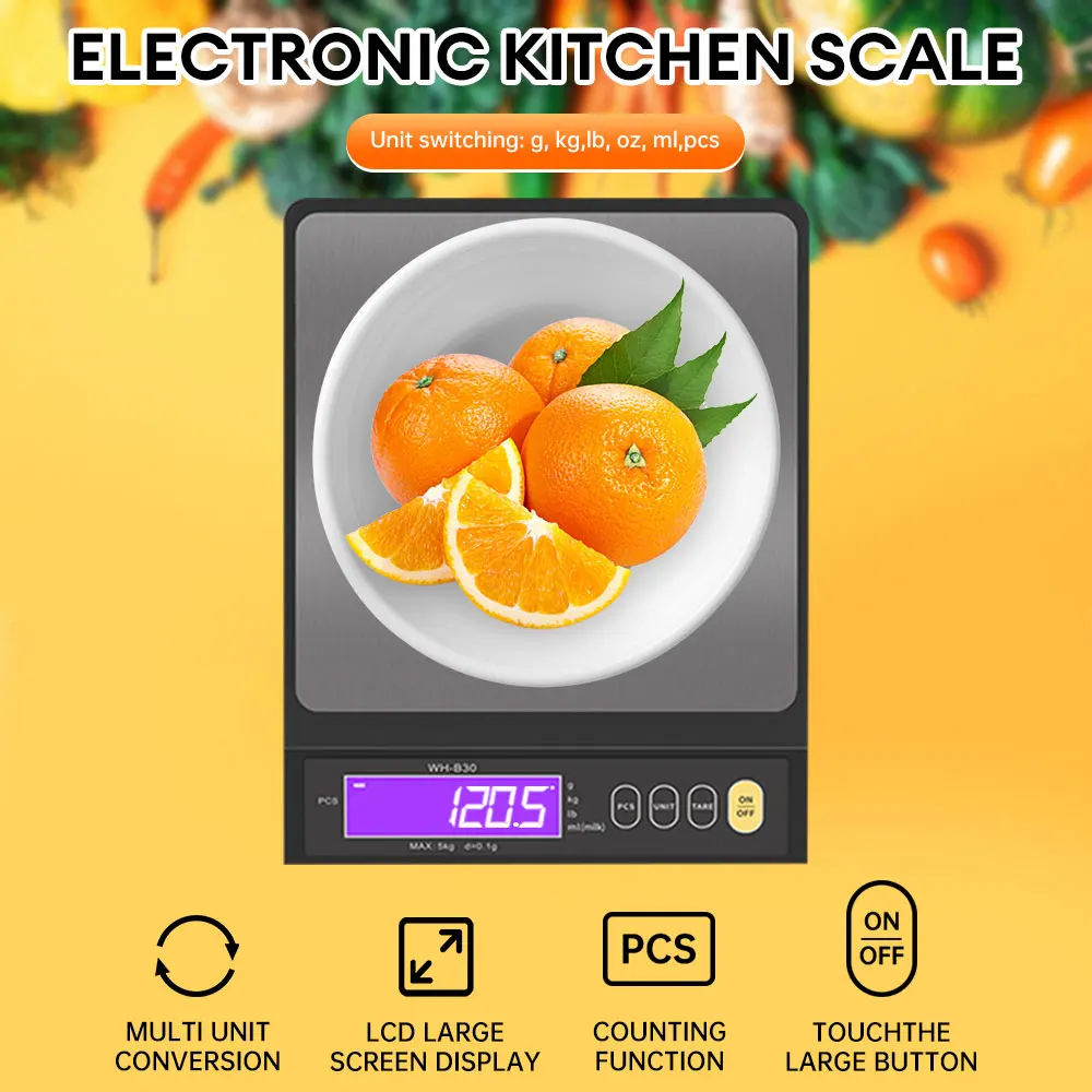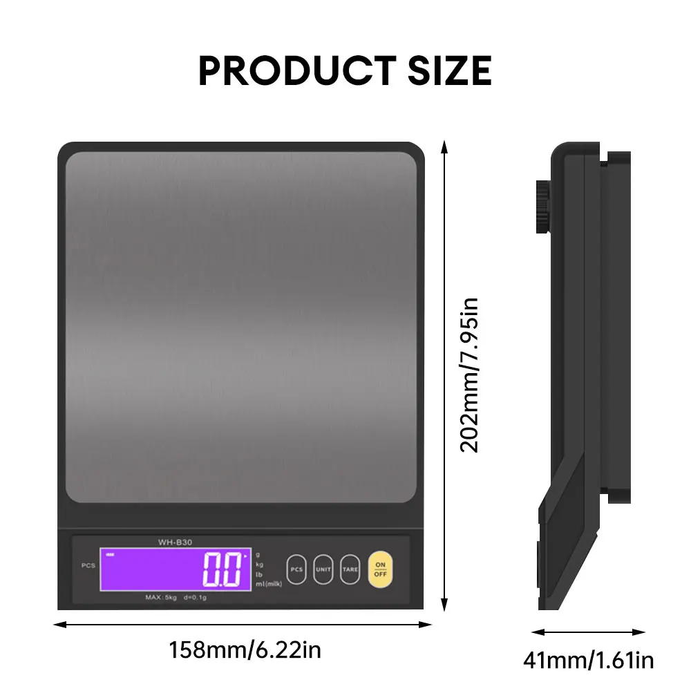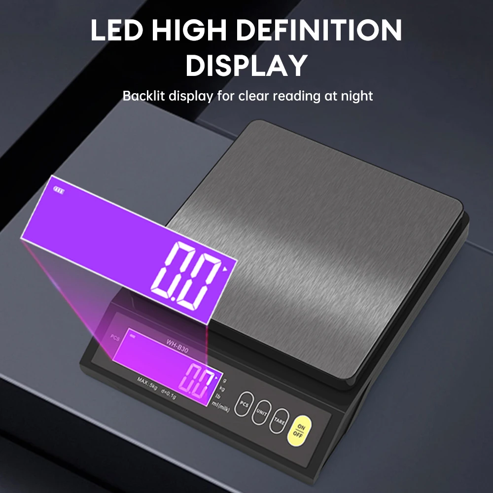 4: يحتوي الميزان الإلكتروني الكبير على وظائف مثل أجهزة استشعار الوزن | ضبط تلقائي للصفر/إيقاف التشغيل/تبديل الوحدات: غرام، رطل، أونصة، مل، قطعة، وكجم (وحدات الـ ١٠ كجم فقط هي التي تُقاس بالكيلوجرام).