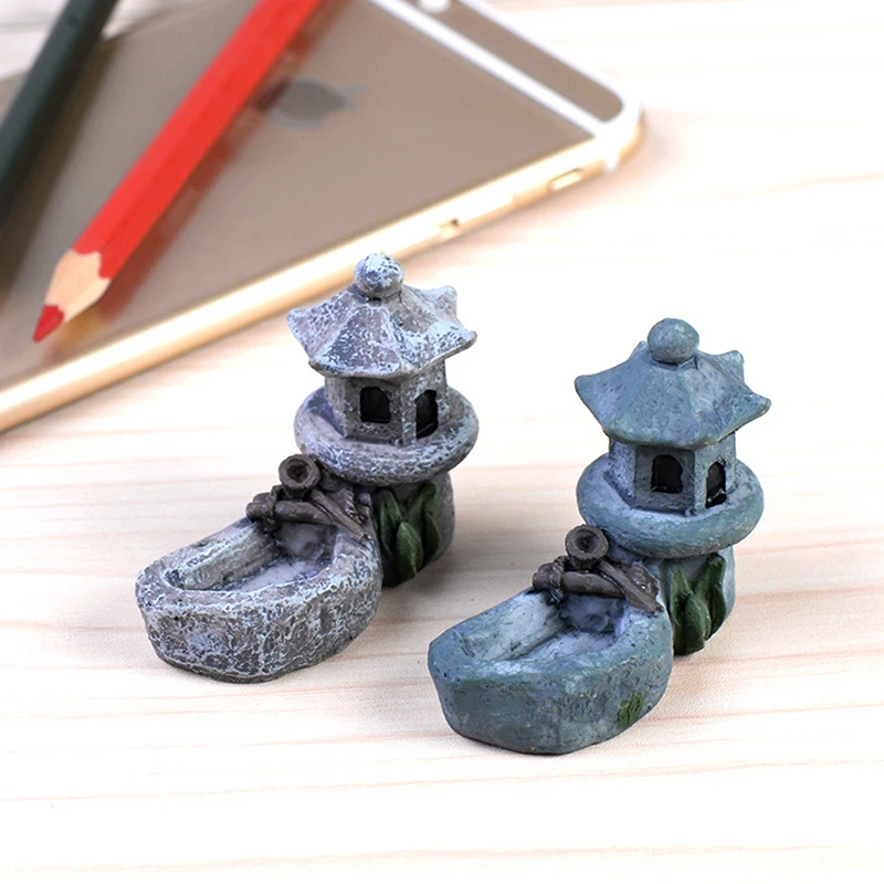 Mini Retro Pond Tower Resin Craft Fairy Garden Decor Figurines Toys DIY Miniatures Terrarium Micro Landscape Home Ornaments