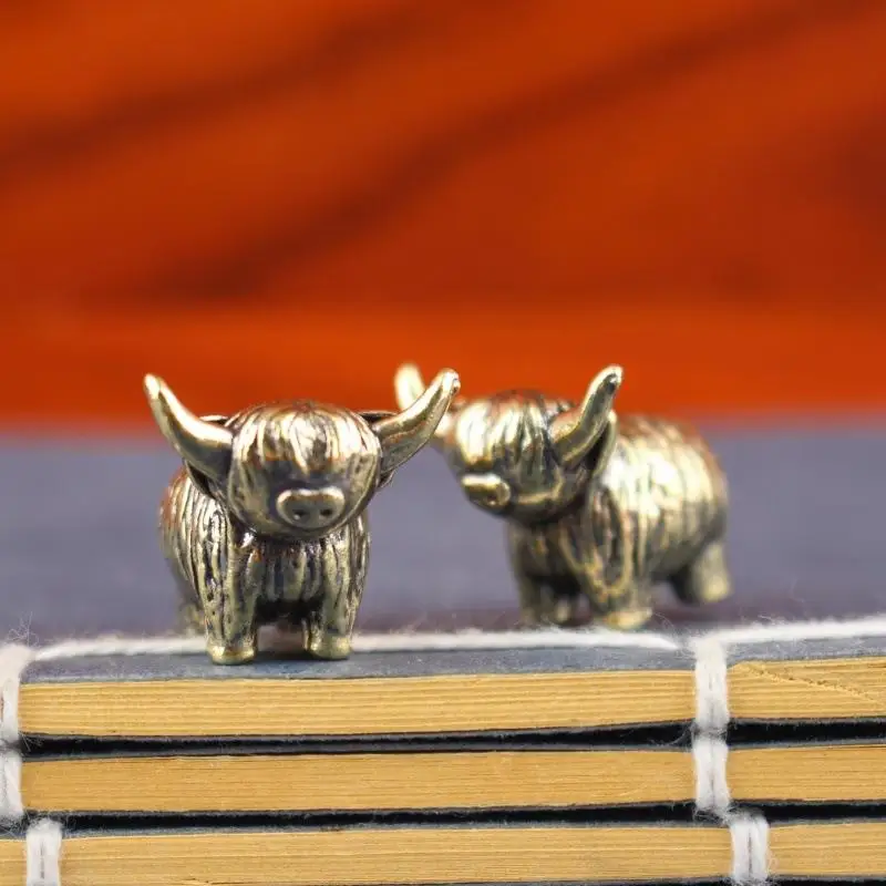 New Mini Retro Brass Wall Highland Cattle Sculpture Hand Toy Gift Keychain Ornament Home Office Desk Decorative Ornament